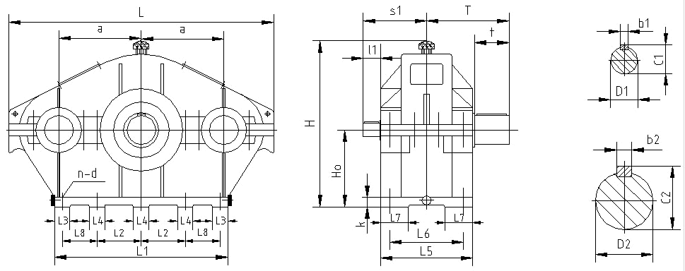 SHD型減速器外形尺寸,見(jiàn)圖9、表11: