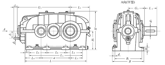 TF、TFK圓錐、圓柱齒輪減速器外形安裝尺寸
