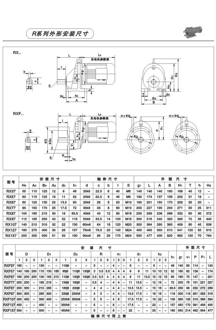 性能、特點: R系列斜齒輪減速機,結合國際技術要求制造,具有很高的科技含量,節省空間,可靠耐用,承受過載能b高,功率可達132Kw,能耗低,性能優越,減速機效率高達95%以上,振動小,噪音低,節能高,選用優質鍛鋼材料,鋼性鑄鐵箱體,齒輪表面經過滲碳淬火,經過精密加工,確保軸平衡度和定位軸承要求,形成齒輪轉動總成的減速機,配合各類電機組成機電一體化,完全保證了產品的質量。