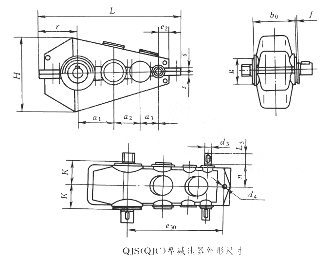 QJS中硬齒面減速機外形及安裝尺寸